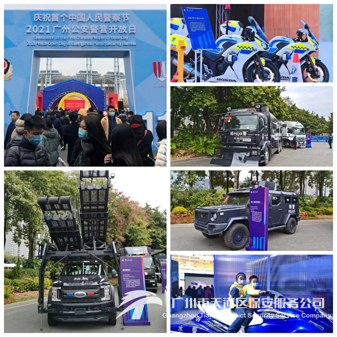 在这个特殊日子,广州市公安局在海心沙亚运公园举办了广州公安警营开放日,设置了广州公安历史回顾主题展览、警用装备展示、警务咨询和互动体验、警务技能展示、水空综合演练以及警营文化主题展览等6个功能展区,以专业的展示,给参展市民带来了新鲜直观的感受,展示广州公安的风采。