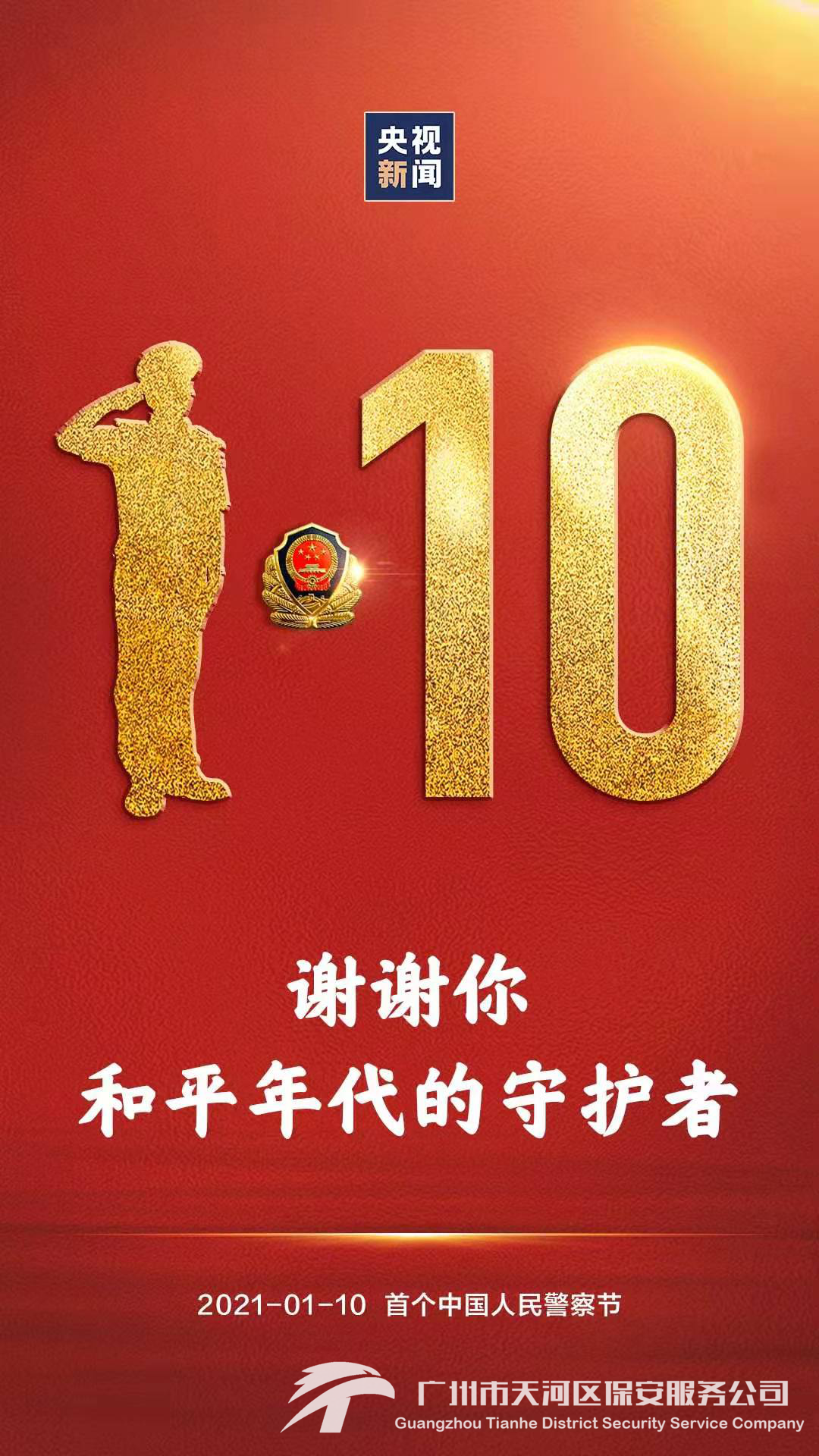2021年1月10日是首个中国人民警察节,也是广州市公安局110报警服务台成立35周年纪念日。