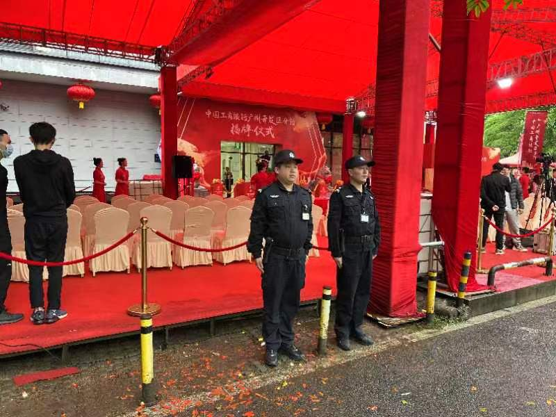 3月30日,中国工商银行黄埔支行、开发区支行合并后的“工商银行开发区支行”,在广州市黄埔区开创大道北隆重举行揭牌仪式。广州市天河保安服务有限公司承担了本次安保任务。