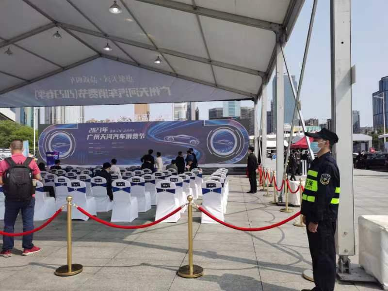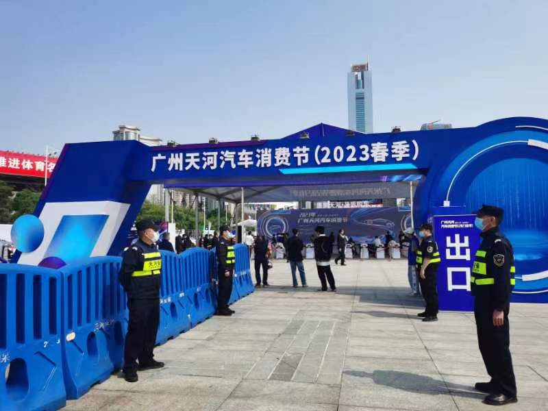 为确保“汽车消费节”活动安全顺利,广州市天河保安服务有限公司提前谋划、精心部署,认真排查活动现场及周边区域安全隐患,制定详实安全预防、应急处置措施,为活动举办、市民出行提供安全保障。