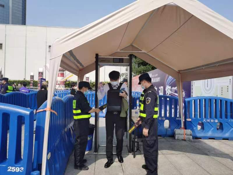 广州市天河保安服务有限公司高度重视此次安保工作,实行定人、定岗、定位、定责,加大对现场及其周边治安巡查,严厉查处各类违法行为,并在出入口设置治安卡点,对人员及物品进行安全检查,防止涉危、涉爆等危险物品进入现场,及时消除各类安全隐患。同时,协助交警部门引导车辆,进行交通提醒,确保活动周边道路交通顺畅。