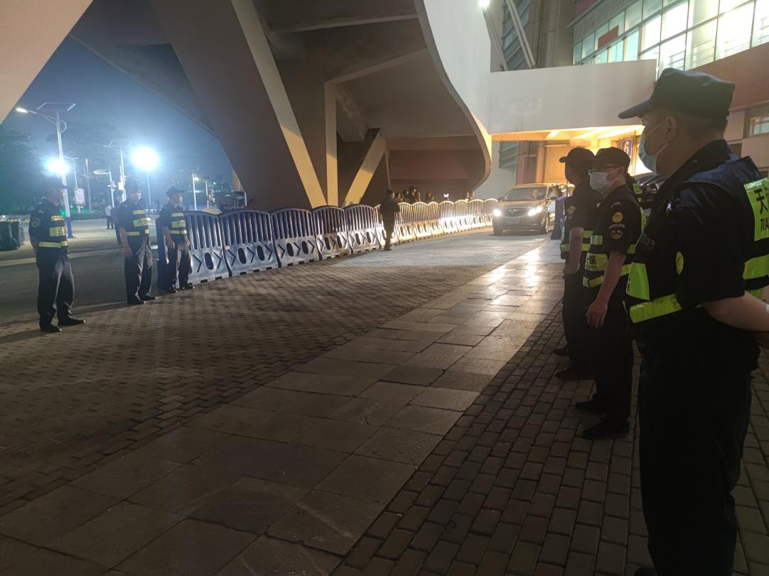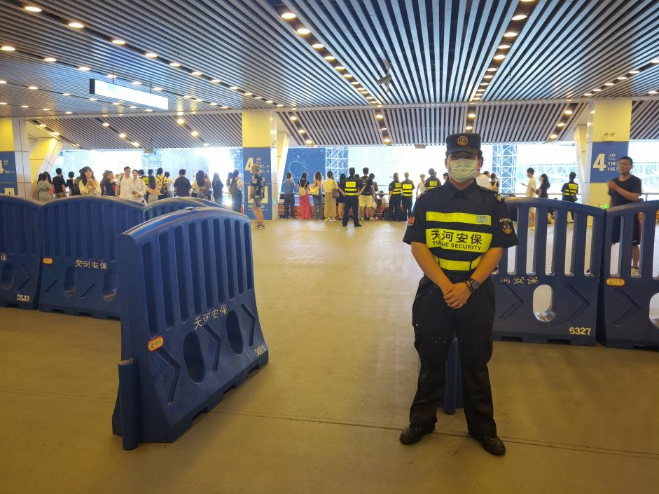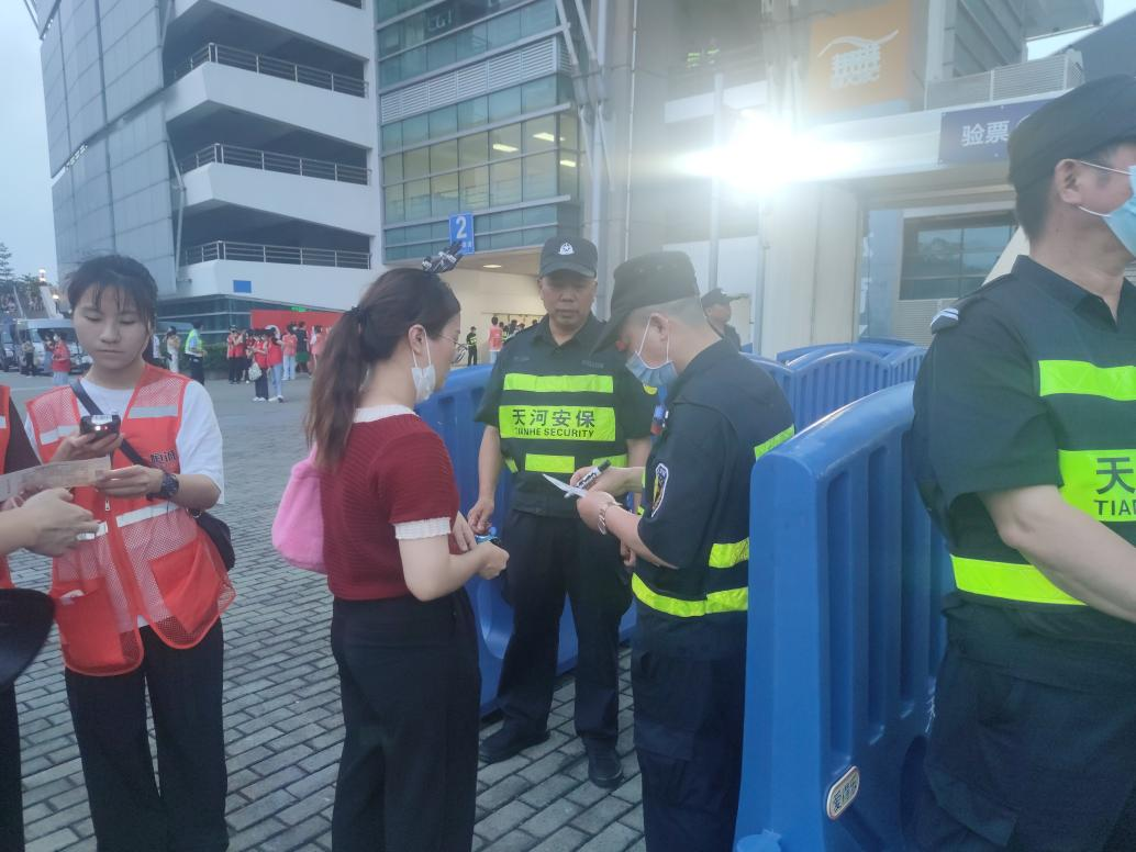 演唱会结束后,为确保演员及观众安全有序退场返程,严防发生拥挤踩踏等事故,天河保安队员们坚守岗位到最后一部车辆、最后一名观众安全离开,才开始陆续撤离现场。