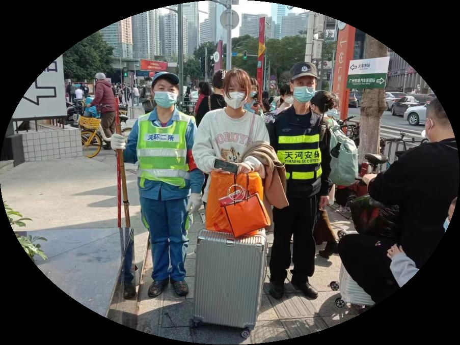 1月14日15时许,保安员颜卫华在广州火车东站周边路段巡逻时,看到一女子心急如焚在原地徘徊。原来,该女子准备坐车回老家过年,即将出发时,发现自己的手机不见了,且离她乘坐的火车发车时间不到1小时。颜卫华同志了解情况后,详细询问该女子在附近区域的活动轨迹,同时,一边带领该女子沿途寻找,一边不停拨打遗失手机号码。在连续不断拨打了近30遍后,电话终于接通,并得知是环卫工人在地铁口附近捡拾到遗失手机。颜卫华立即带领该女子奔向地铁口。最终,该女子在颜卫华同志的协助下,手机失而复得,并顺利登上了归家的列车。“手机是现代人们工作生活的最重要组成,没有手机,寸步难行,手机失而复得,不知如何表达心中的感激。真是太感谢你们了!”女子喜极而泣,深情道谢。