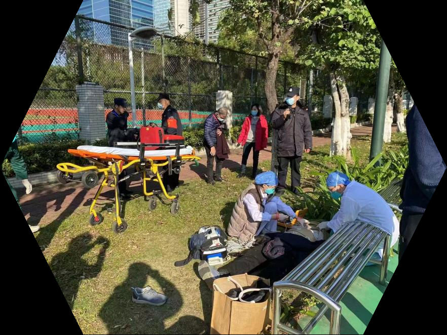1月21日早上,公司派驻天河体育中心保安中队接到市民求助,称在篮球馆附近有市民运动过程中晕倒,请求帮助。此时,带班队长梁伟科顾不上吃早饭便立即按照以往应急演练程序,通知最小应急单元携带AED快速出动,同时拨打120急救电话。赶到现场后,发现市民已失去呼吸和自主意识,队员立即疏散群众、进行心肺复苏急救、AED除颤。他们与死神赛跑,追逐着惊心动魄的“生死时速”。直到患者恢复呼吸和脉搏,120急救赶到进行转运时,该市民已转危为安,目前在医院进一步接受治疗。