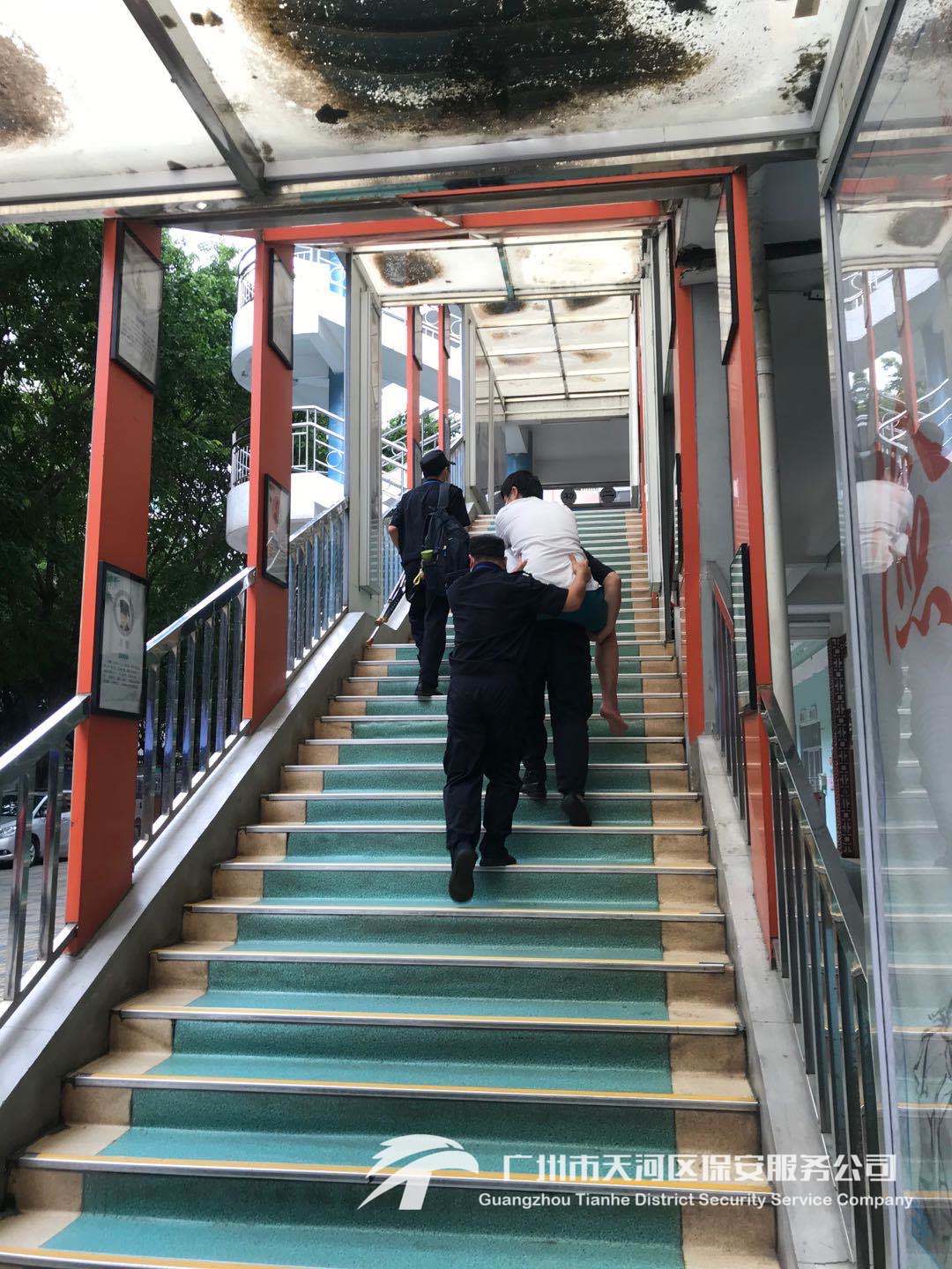 (我司驻点队长周作智和队员郭金旺帮助行动不便考生到四楼考场)