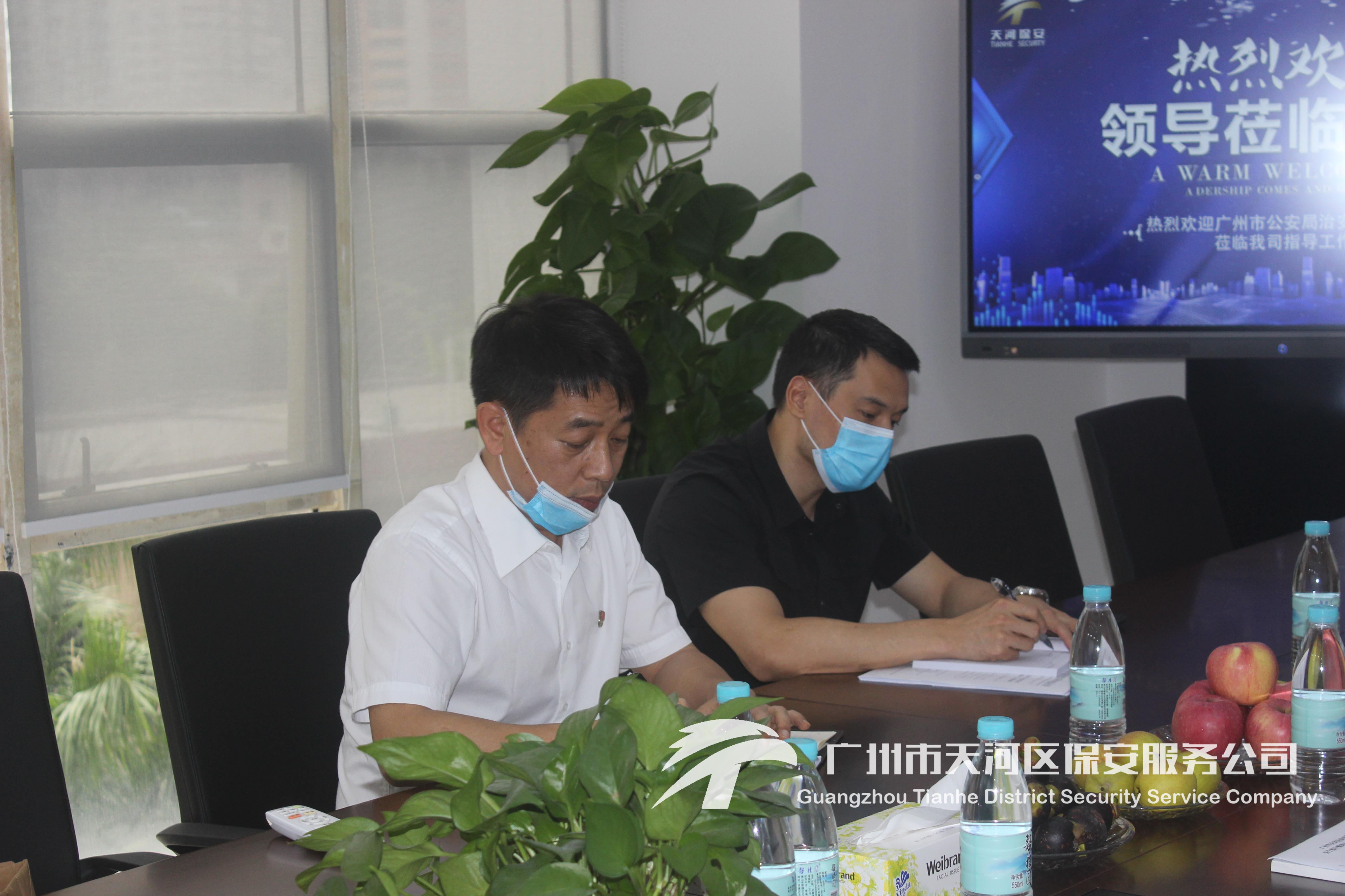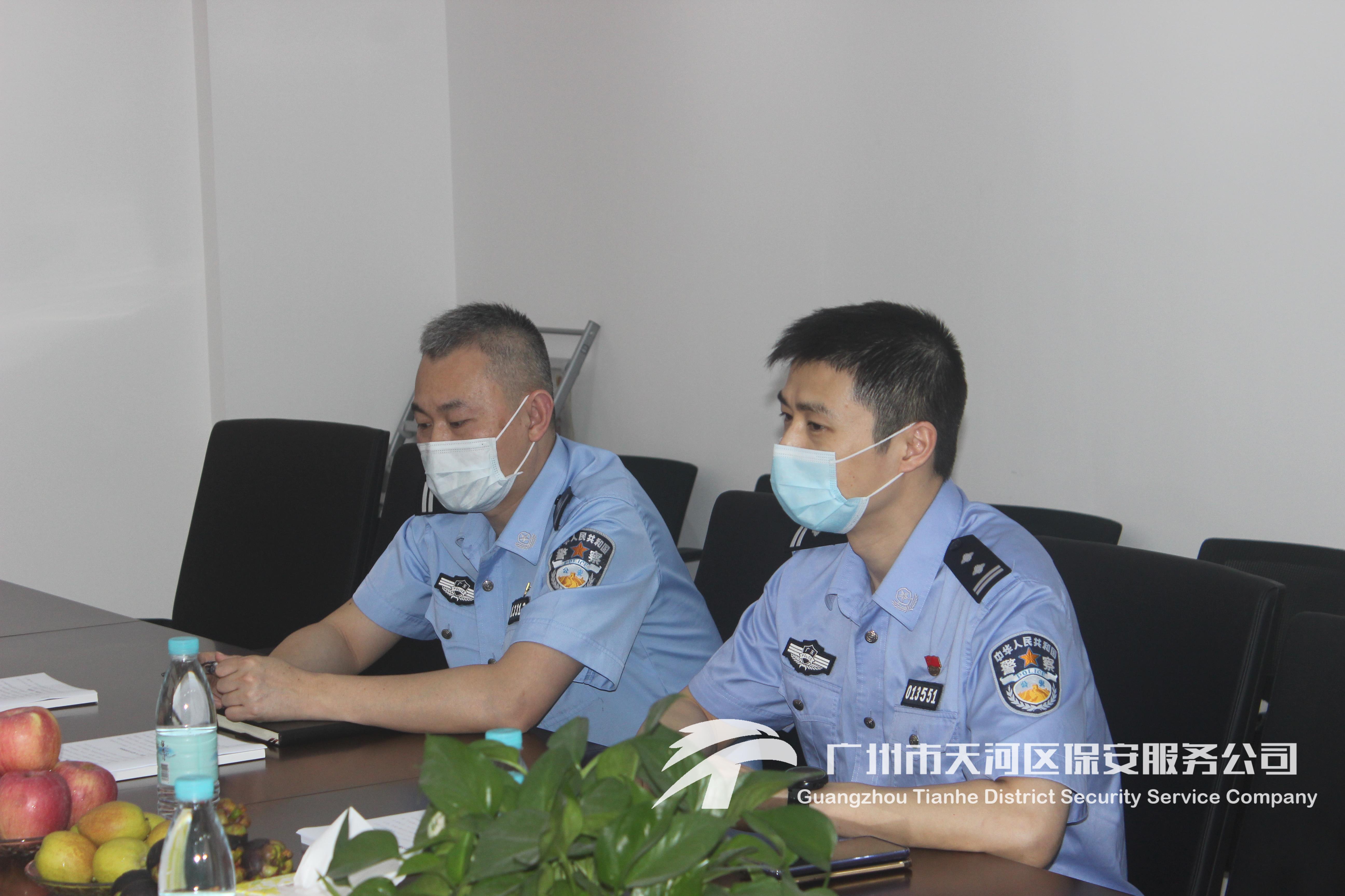 为深入全面了解我司“新天河模式”推进和疫情防控工作情况,2020年5月14日下午,广州市公安局治安支队保安科林科、揭科莅临我司调研考察、指导工作。区公安分局治安大队吴教、苏大全程陪同调研。