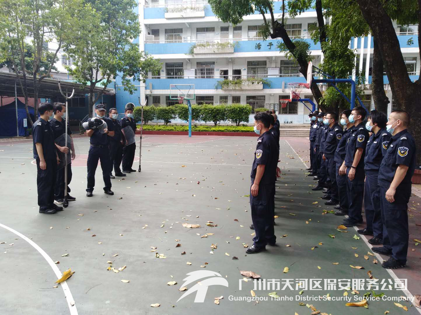 在天河区中小学、幼儿园开学之际,为了建立健全学校保安队应急体系和运行机制,全面提高处置突发公共事件的能力,切实保障师生和学校的生命财产安全,我司根据天河公安分局保安委的要求和全面维护校园安全稳定的需要,7月份开始陆续在各个驻派学校开展防恐防暴及消防安全培训演练工作。